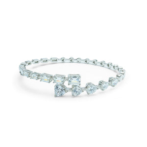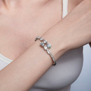 • Luxury rhodium-plated metal bracelet featuring heart and rectangular-shaped zirconia solitaires