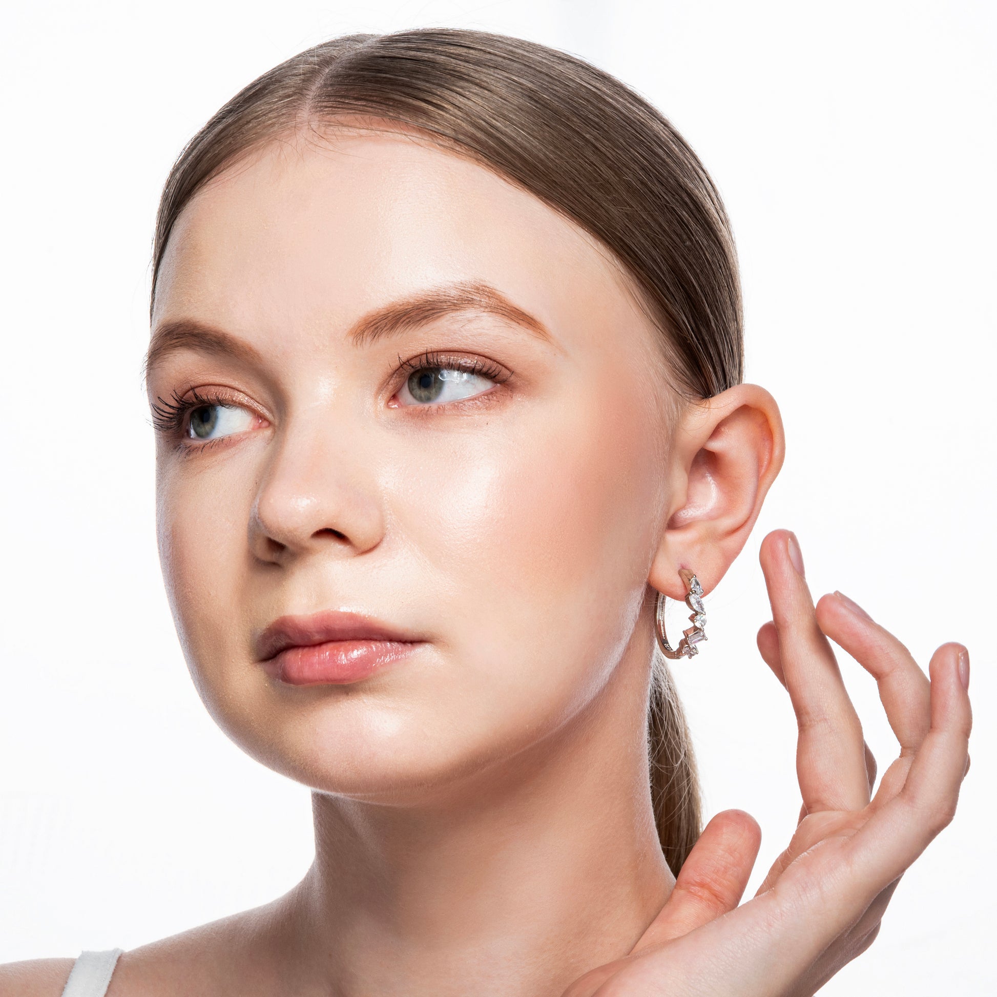 • 92.5 silver hoop earrings adorned with multi-shaped Swarovski crystals