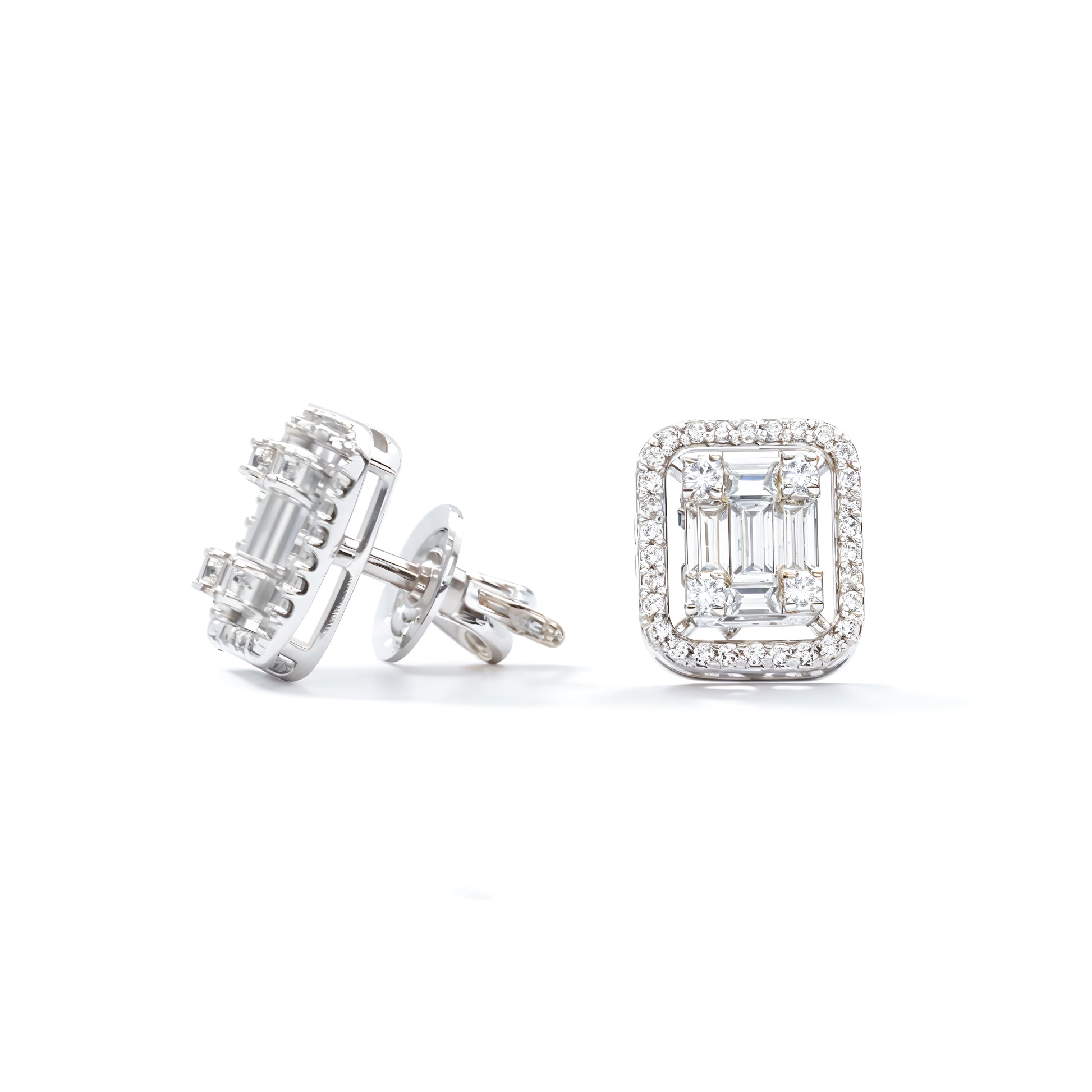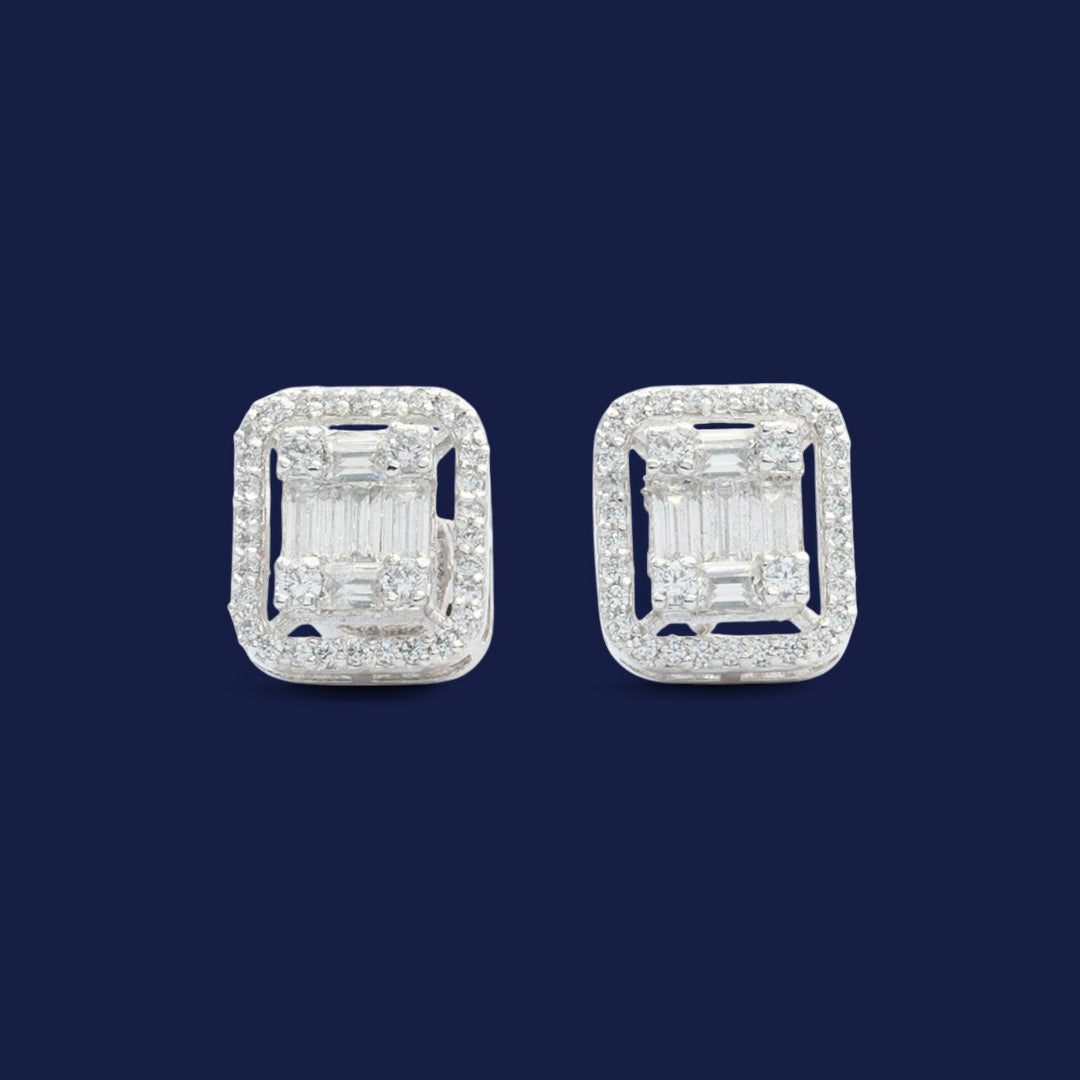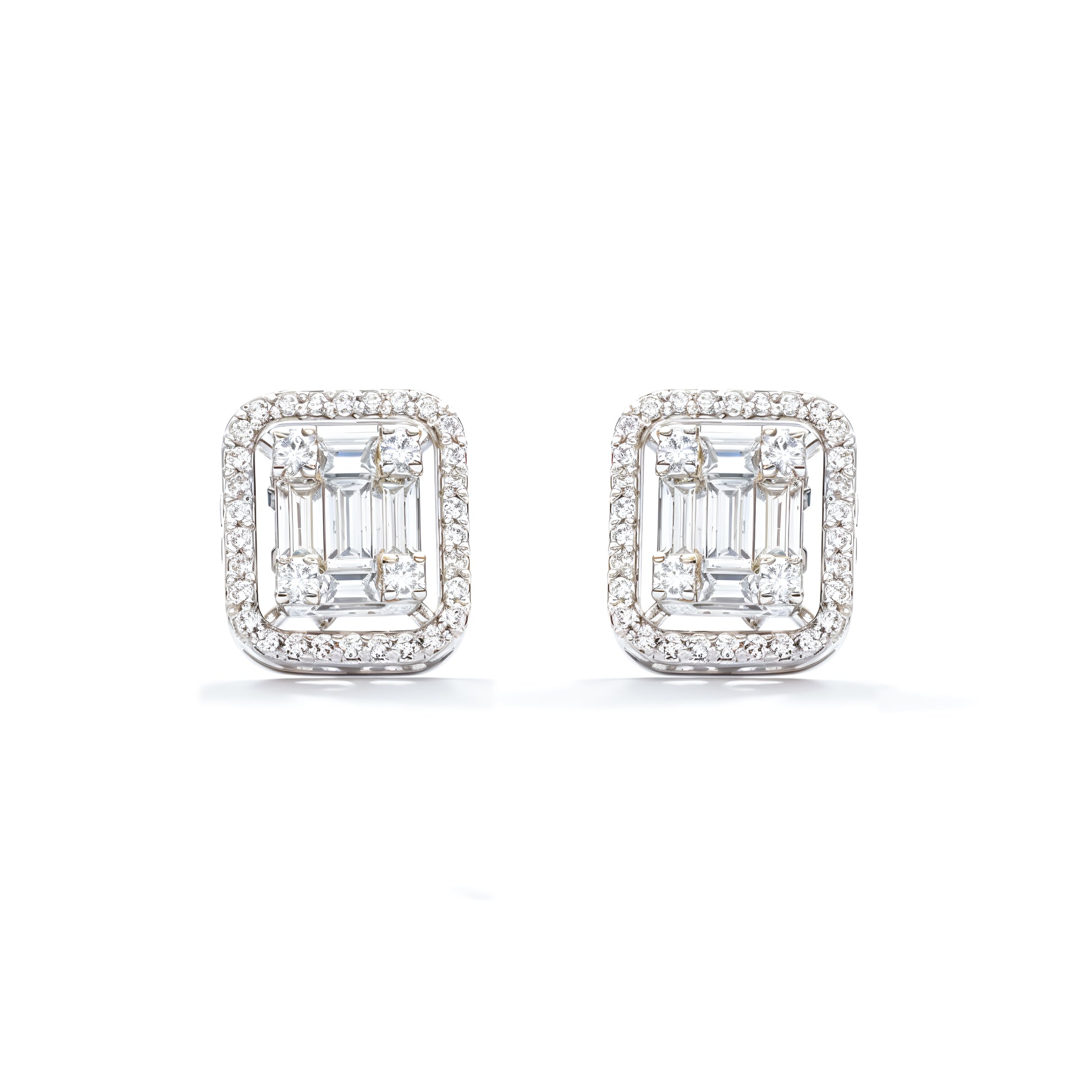 • 92.5 silver studs featuring rectangular Swarovski crystals with halo detailing