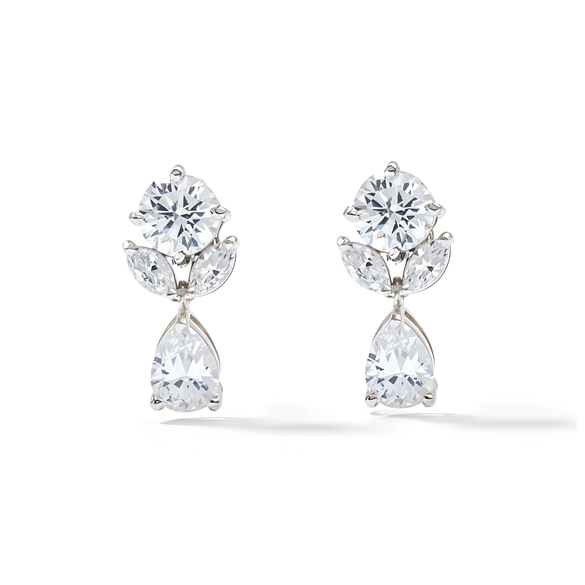 • 92.5 silver studs with drop danglers, featuring round, leaf, and teardrop Swarovski crystals