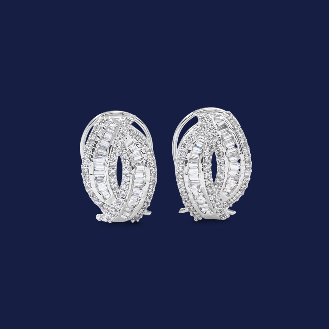 Experience elegance with our exquisite silver tone earrings, intricately designed and adorned with dazzling cubic zirconia crystals. These captivating earrings are the perfect accessory to elevate any special occasion, offering unmatched sparkle and sophistication. Crafted with attention to detail, the timeless design ensures they can be cherished for years to come. Available in a refined silver hue, making them the ideal piece to complement any outfit.
