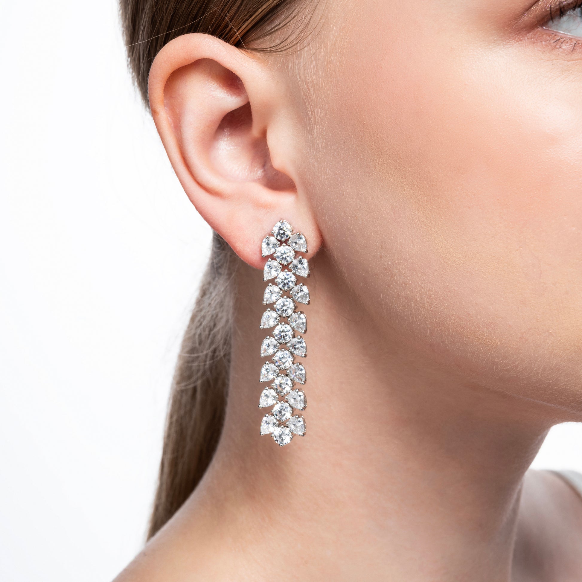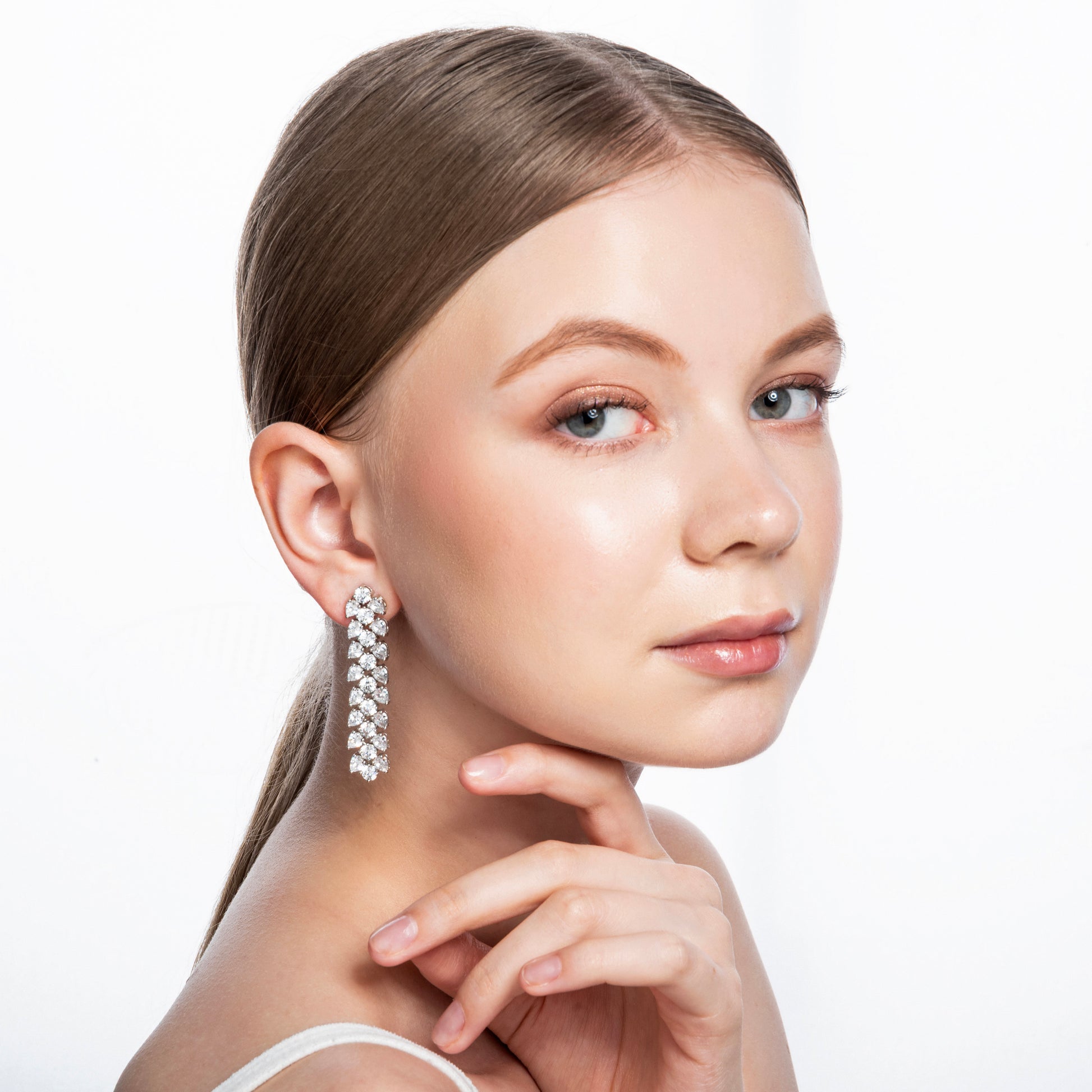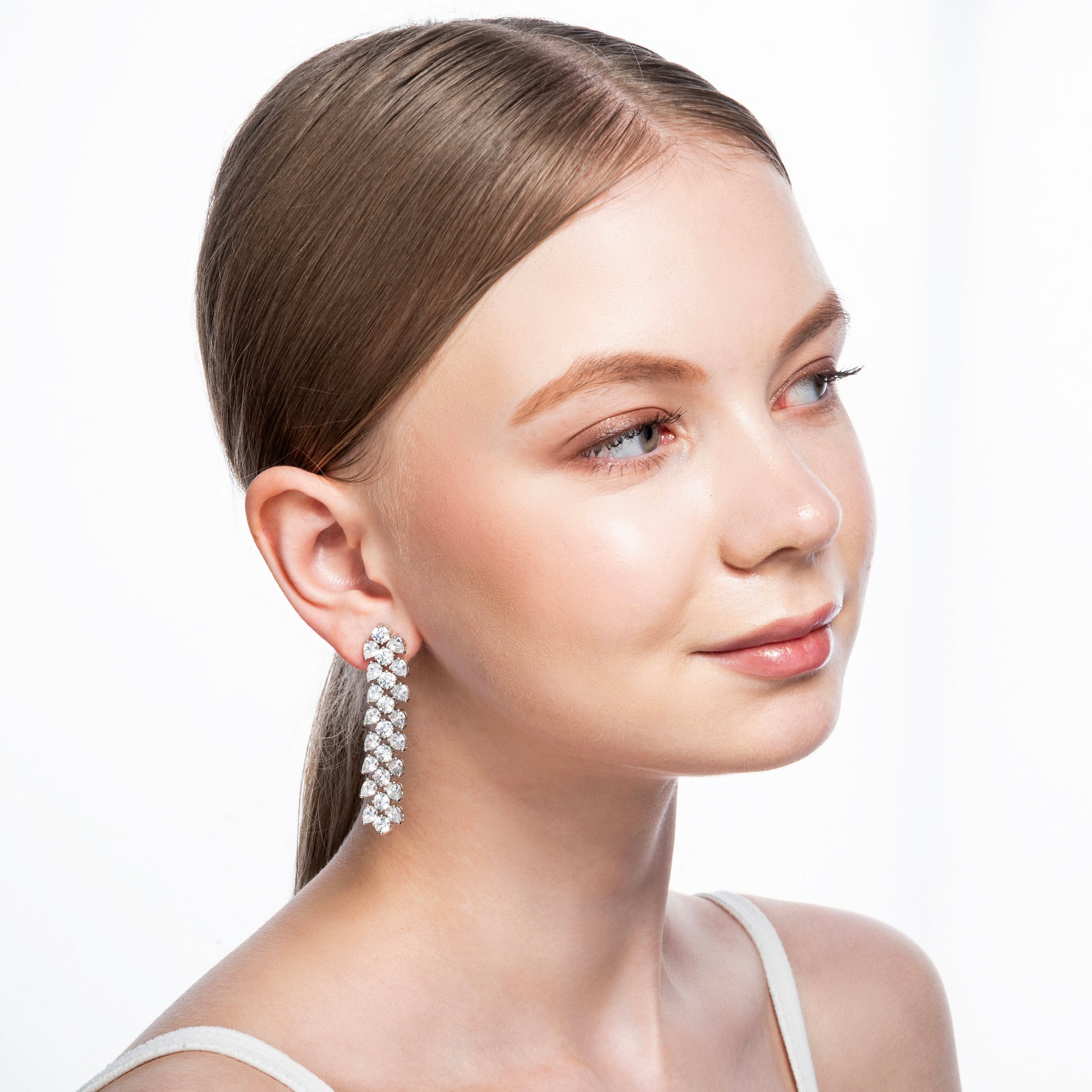• Dazzling luxury rhodium-plated metal earrings in elegant dangle style