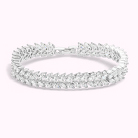 • Luxurious rhodium-plated metal tennis bracelet featuring leaf-shaped diamond-look Zirconias