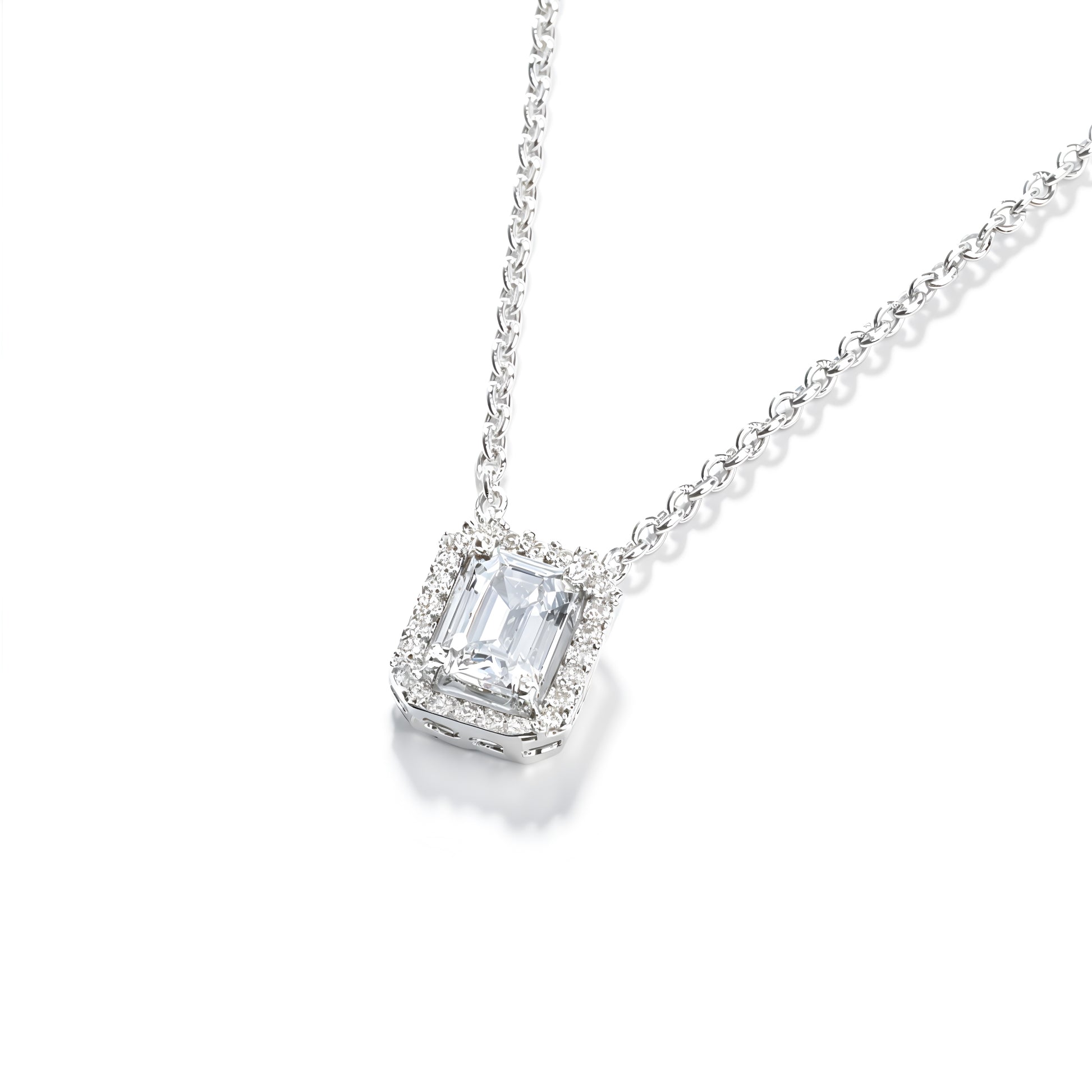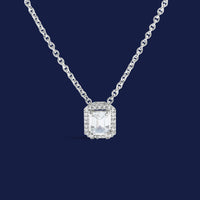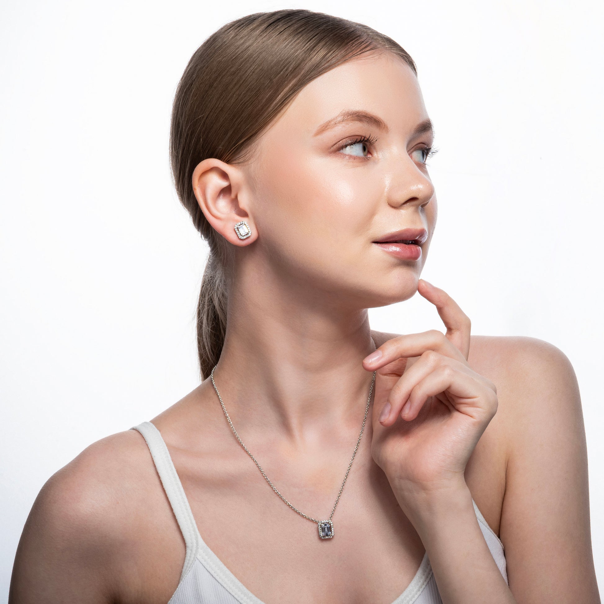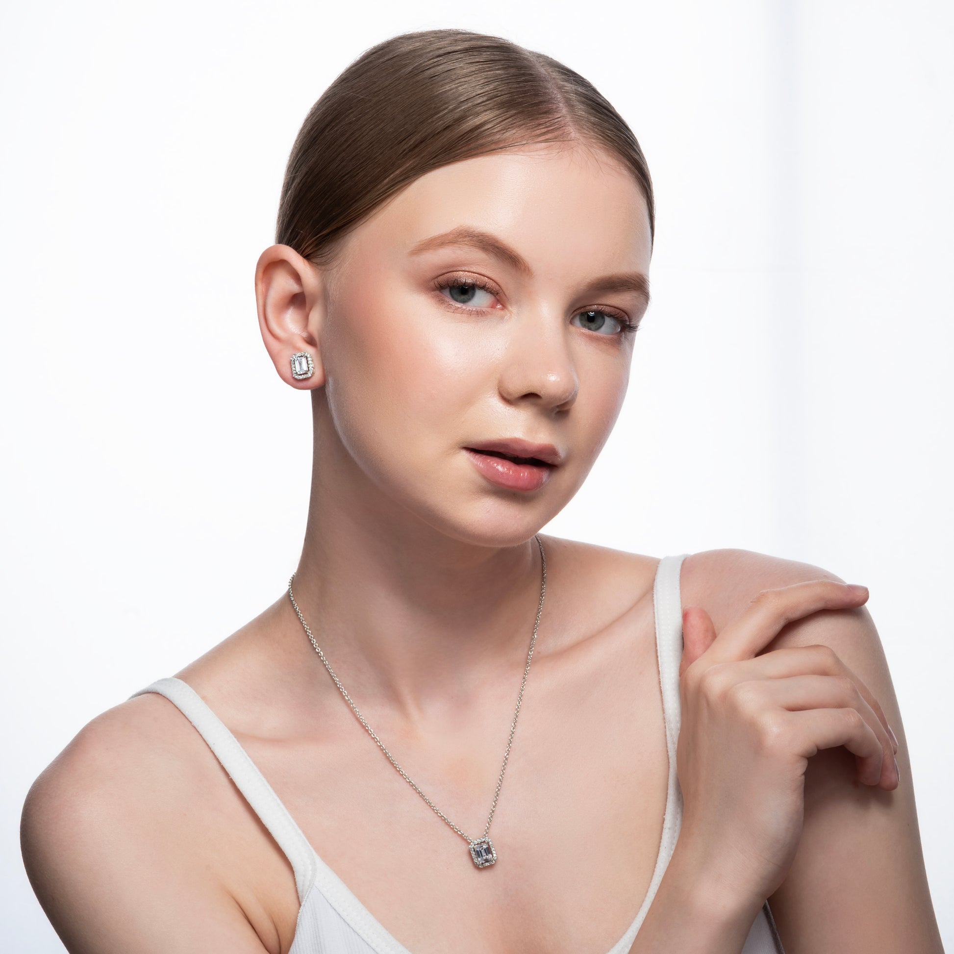 • Rectangle-shaped Swarovski pendant with halo detailing for refined elegance