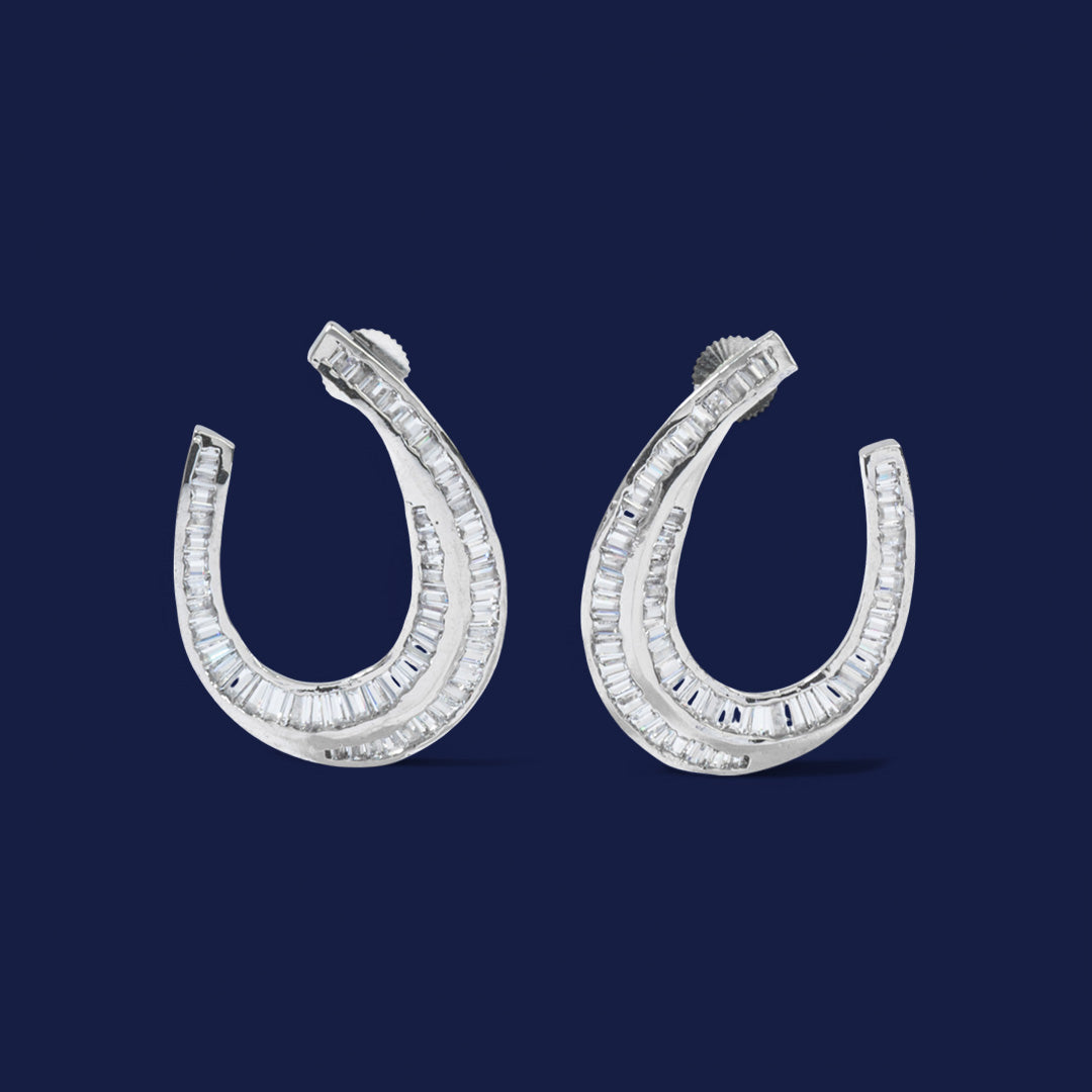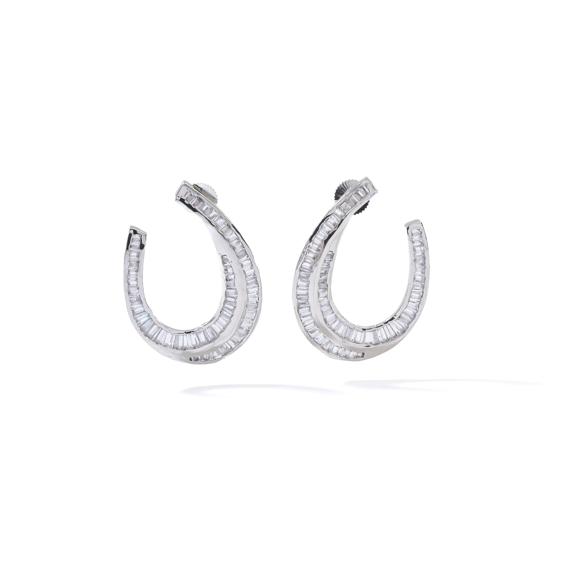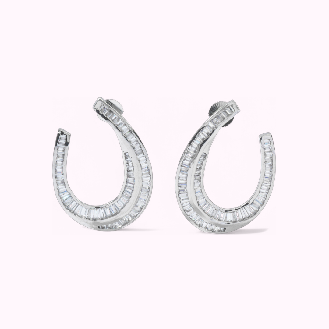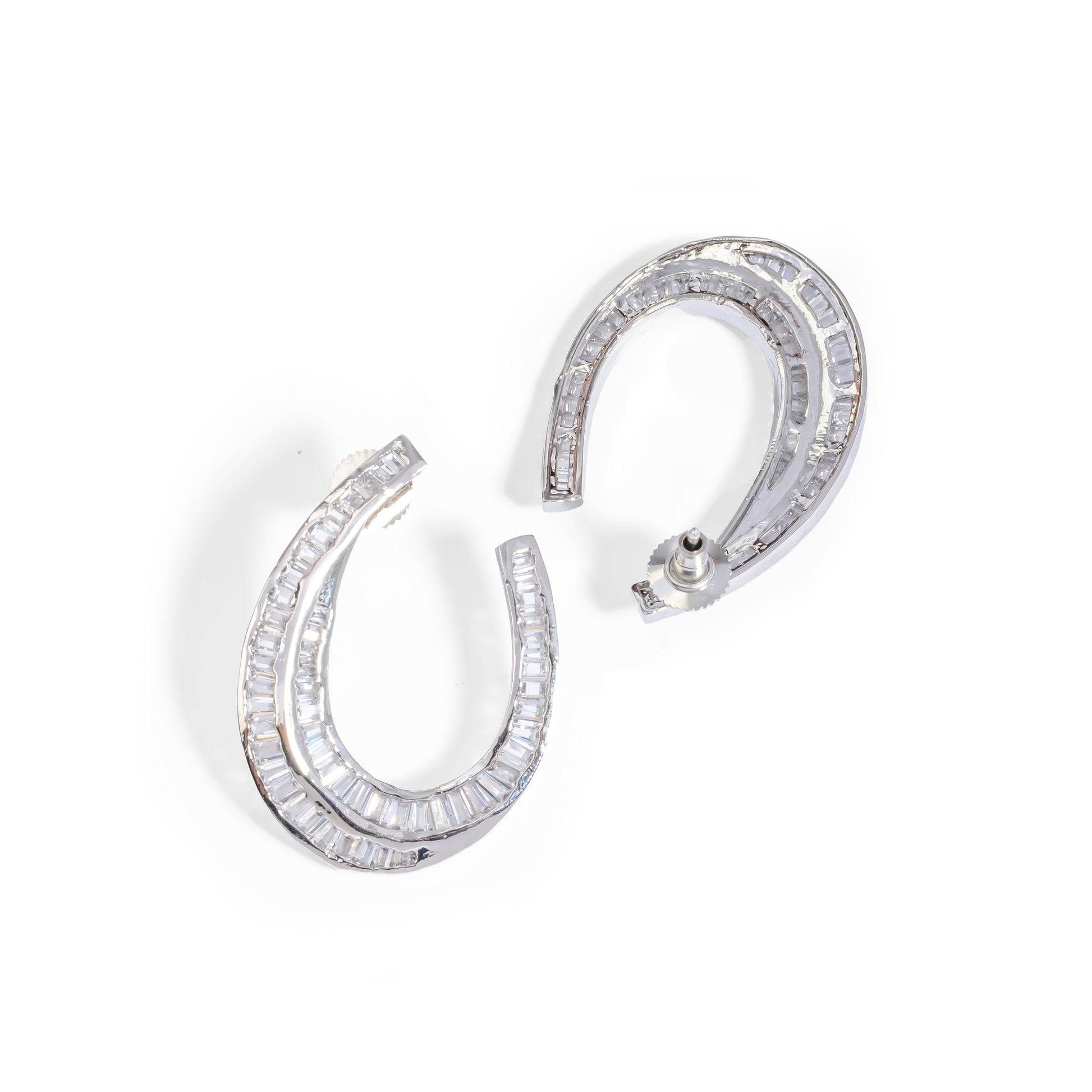 • Luxury rhodium-plated metal statement studs with radiant diamond-look Zirconias