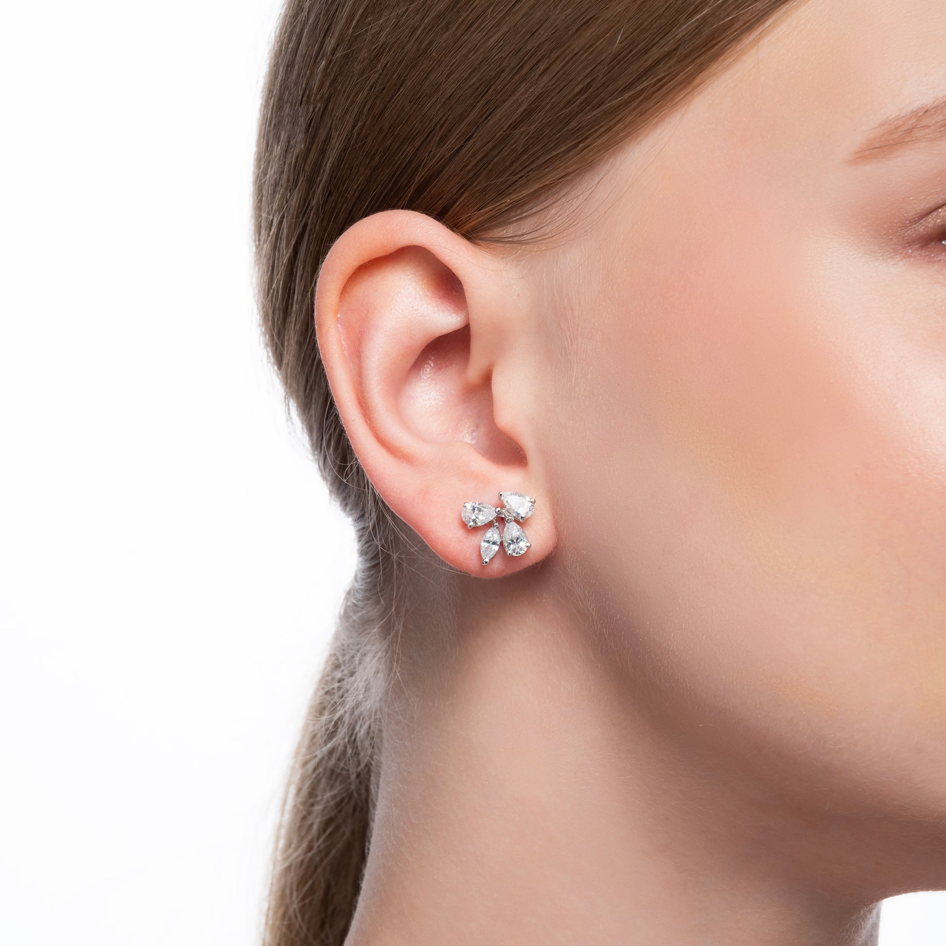 • 92.5 silver hoops featuring drop, leaf, round, and baguette-cut Swarovski crystals