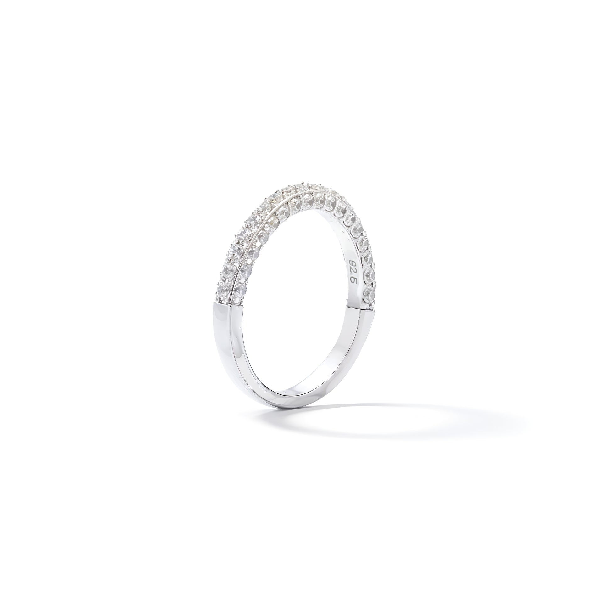 • Elegant 92.5 silver ring band featuring petite round-cut Swarovski solitaires